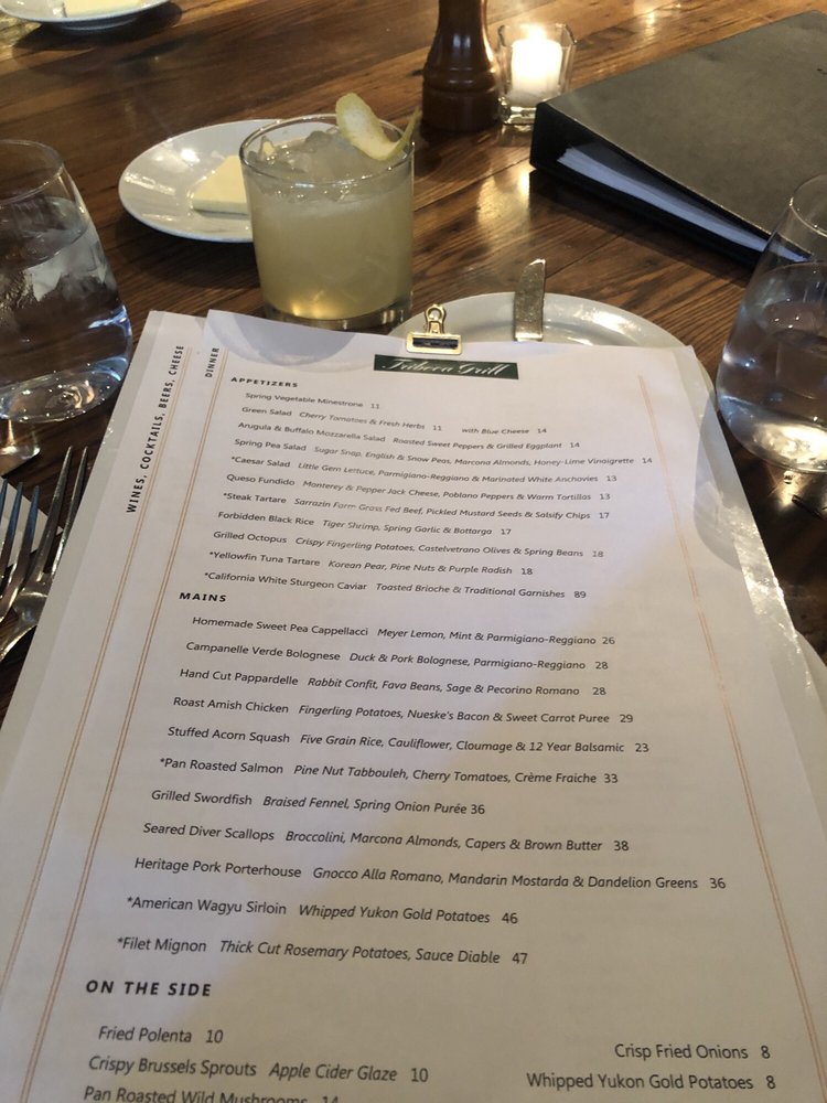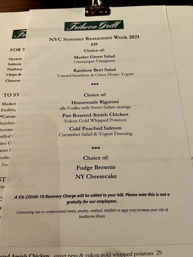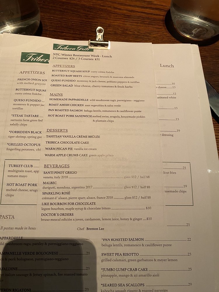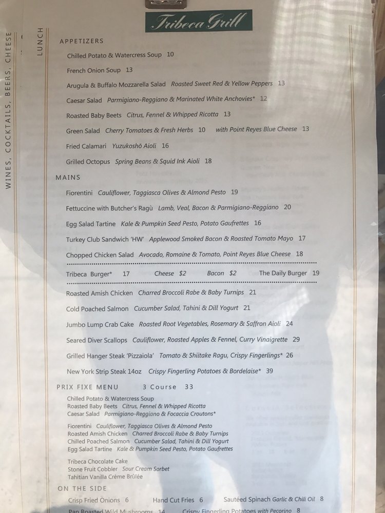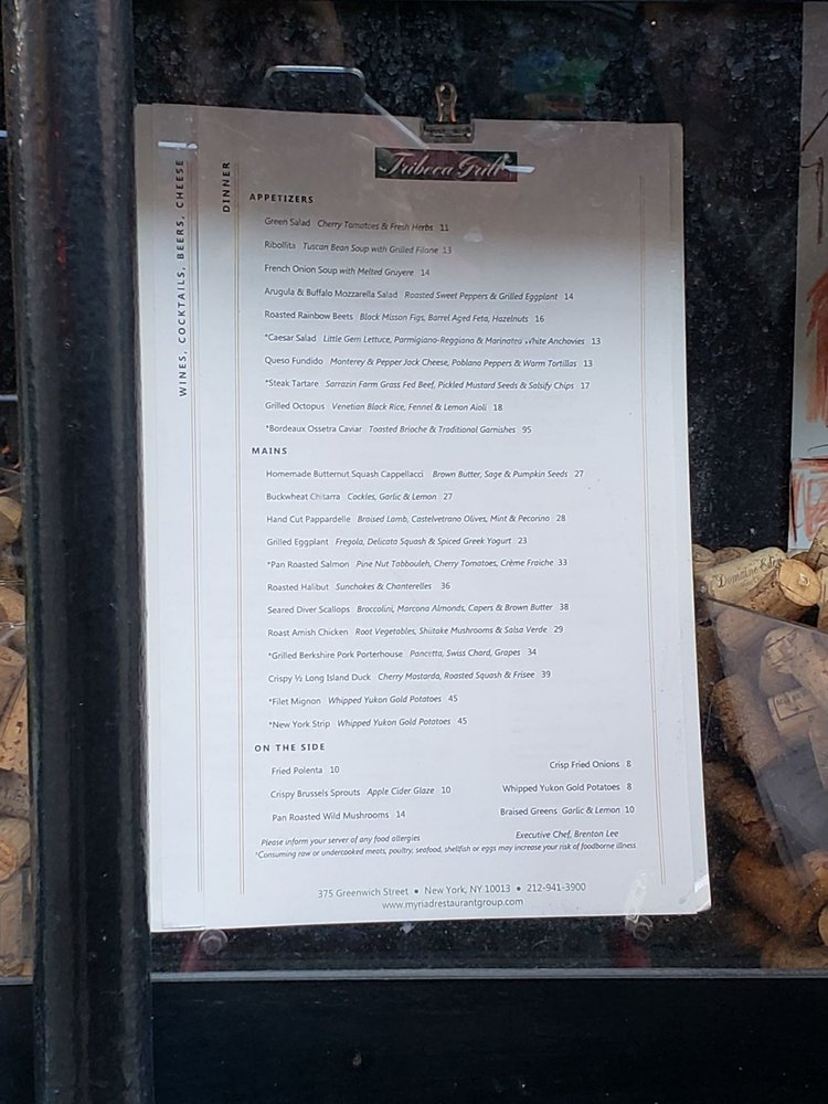 Introducing the menu at Tribeca Grill, a classy and upscale restaurant in New York offering a wide range of options for all dietary preferences. From Pescatarian and Vegan choices to many Vegetarian options, Tribeca Grill caters to everyone. The menu features a variety of dishes, from smoky burrata with heirloom tomatoes to mushroom ravioli and pork chop. Customers rave about the stellar service, delicious food, and inviting ambiance. Whether you're looking for a romantic dinner spot or a place to gather with a large group, Tribeca Grill is the perfect choice. Don't miss out on the full bar, outdoor seating, and private dining options for special occasions. Experience the best nights on Thursday, Friday, and Saturday at Tribeca Grill.